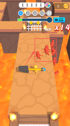 1、开启冲关之旅:进入游戏熟悉橡皮人操控方式,明确 “控制方向、冲开障碍” 规则,了解道具与武器基础作用,开启首关。