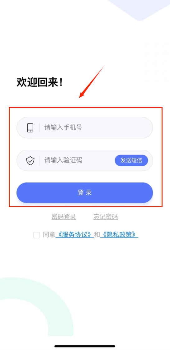 4、最后勾选同意服务协议的小方框,点击蓝色的登录按钮就可以成功进入软件主界面开始使用各种功能了哟。