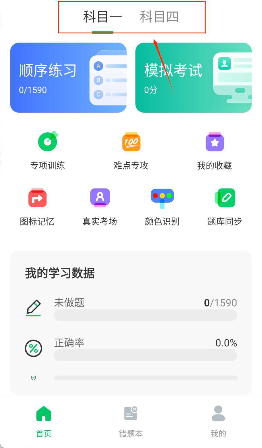 1、下载安装后选择科目一或科目四进入题库,顺序练习模式按章节系统学习所有题目,答题后即时显示解析。