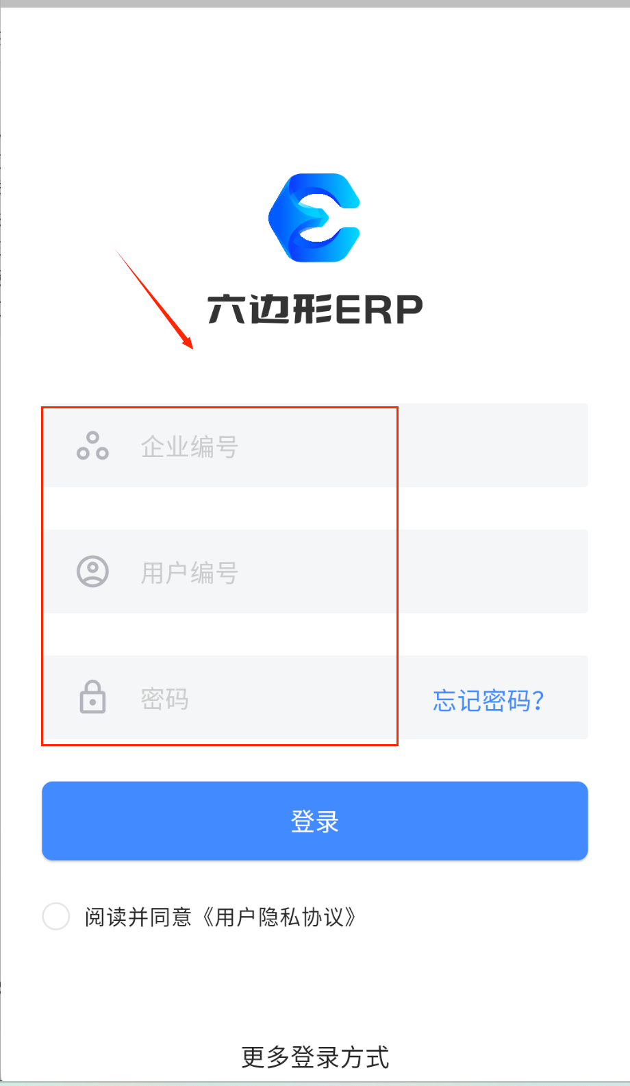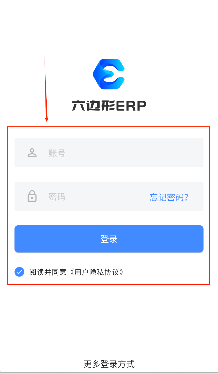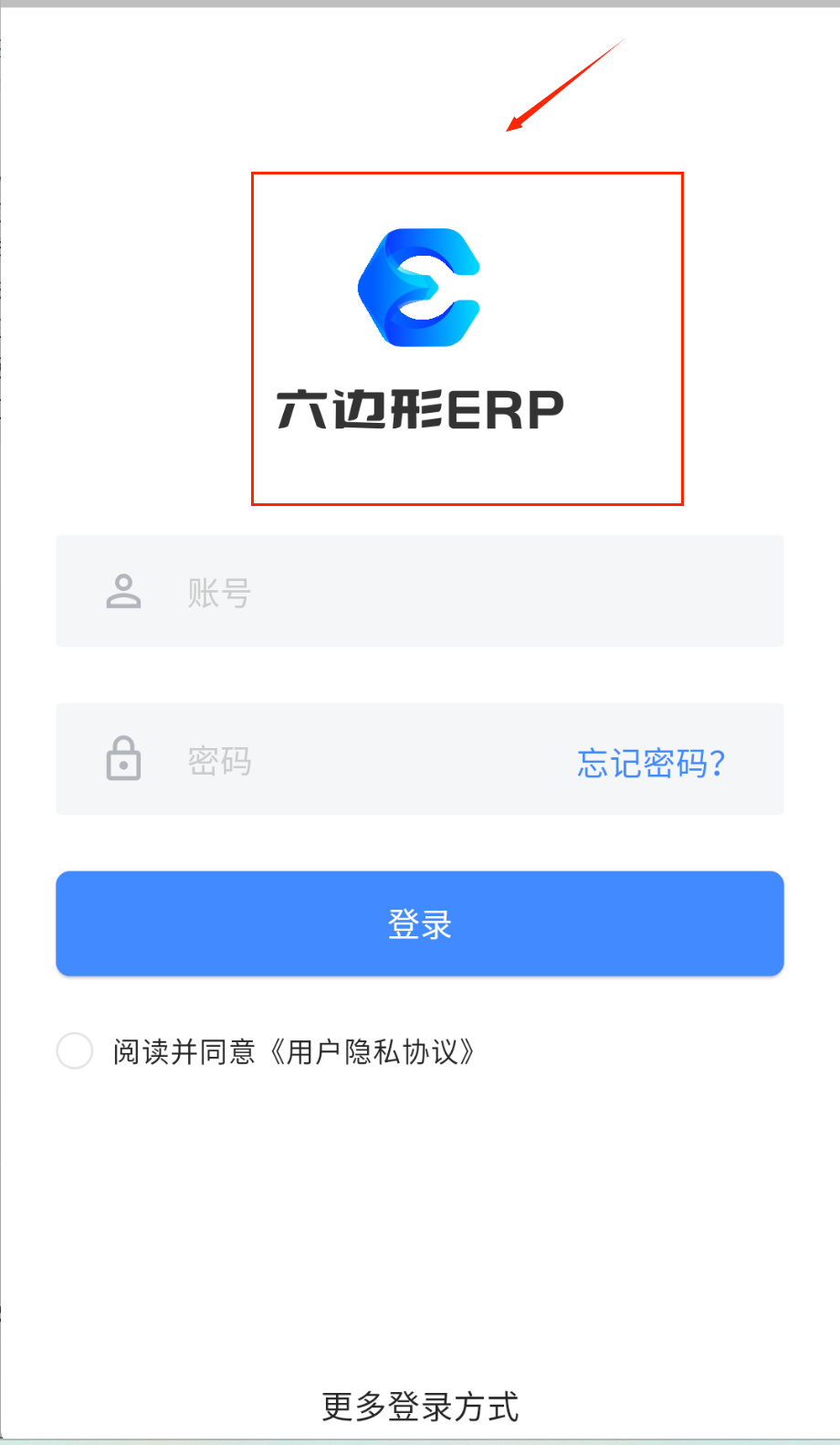 4、最后勾选同意用户隐私协议的小圆圈,点击蓝色的登录按钮就可以进入系统啦,底部还有更多登录方式可选哟。
