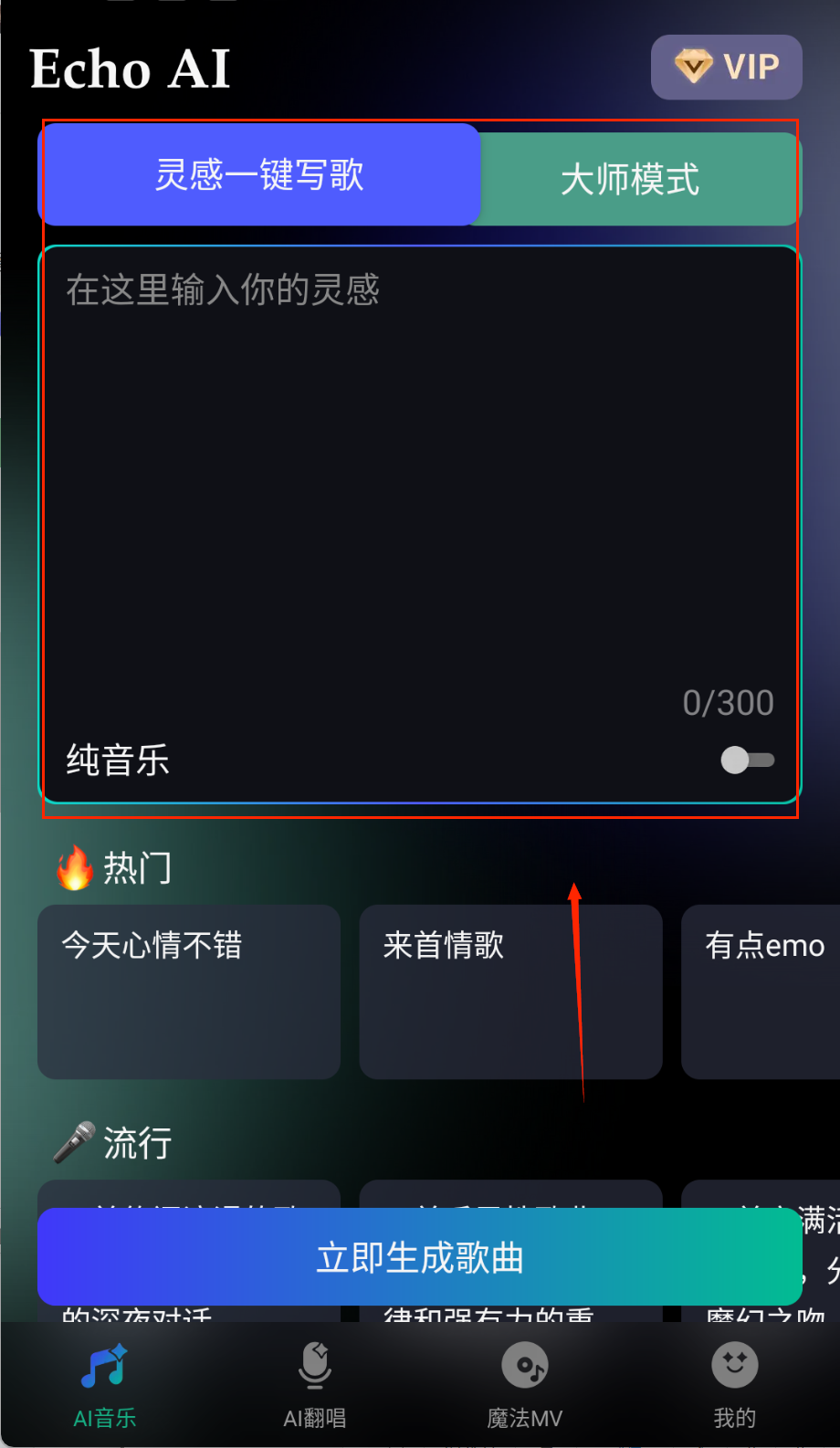 EchoAI一键成曲运用先进AI技术为用户提供智能音乐创作服务,支持输入灵感关键词自动生成完整歌曲,具备AI翻唱与MV制作功能,多种音乐风格与预制音效可选,生成作品可导出分享,满足音乐爱好者个性化创作需求,操作简单无需专业音乐基础即可打造专属音乐作品。