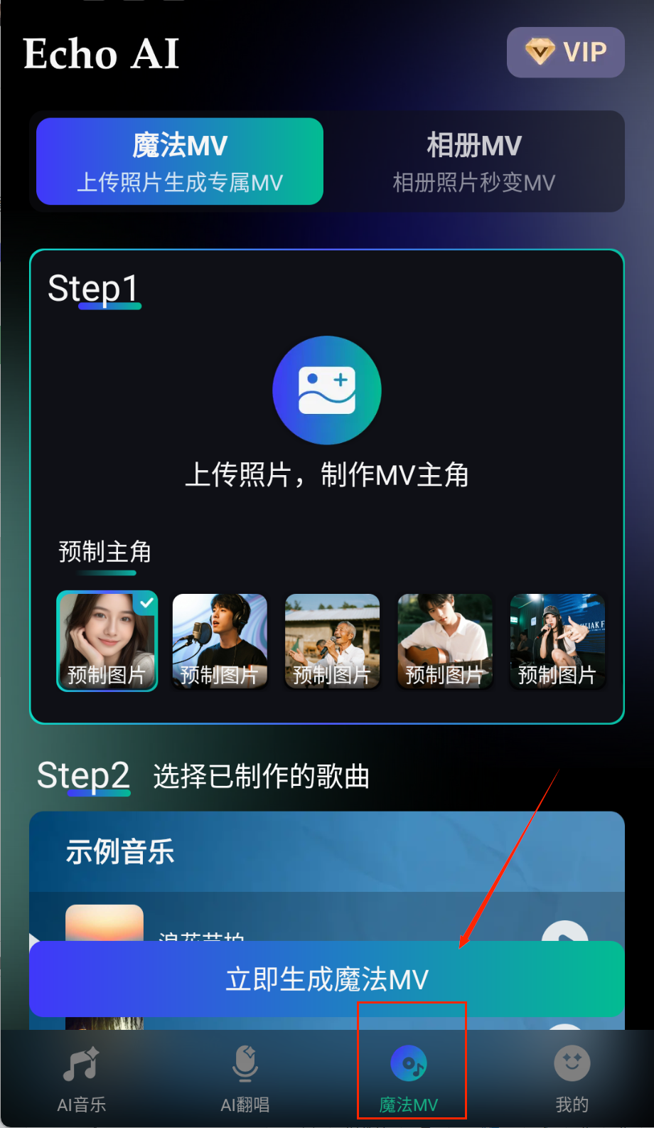 3、MV制作模块允许上传个人照片或视频片段素材,系统会智能分析音乐节拍自动生成动态MV视频,支持自定义添加转场特效与歌词字幕。