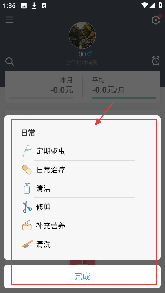 3、在日常任务选择中,可挑选【定期驱虫】【日常治疗】等任务,记录宠物日常护理。