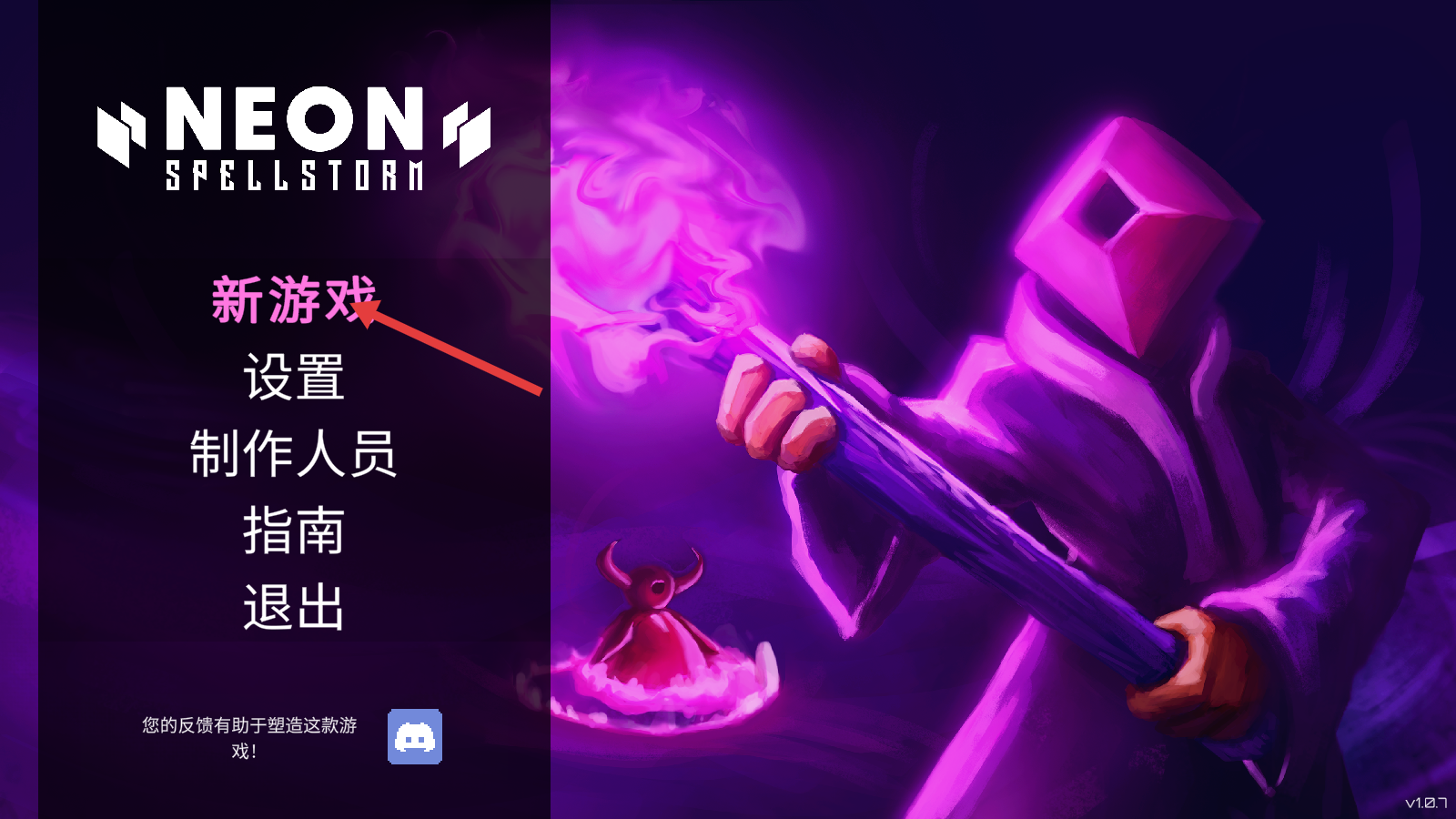 1、在《NEONSPELLSTORM》主界面,点击【新游戏】,开启魔法战斗冒险。