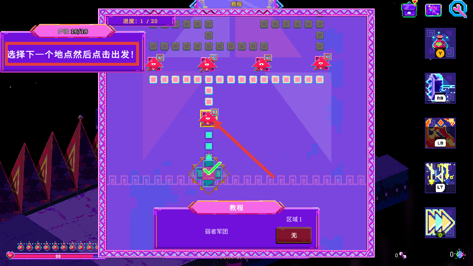 4、教程步骤16/18时,【选择下一个地点然后点击出发】,选好目标地点后前往新区域挑战。