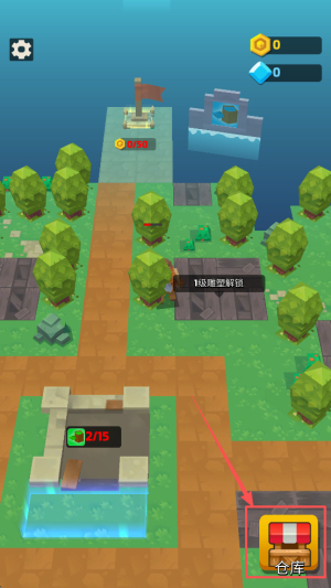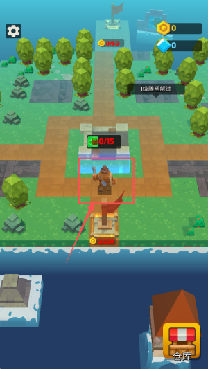 1、点击雕像开始建造,放置雕像,移动你的人物进行游戏。