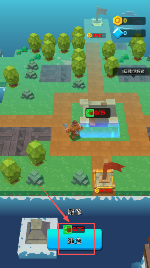 2、选择雕像并点击“建造”按钮,打造你的世界。
