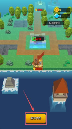 3、点击“解锁地图”按钮,可以查看更多区域。