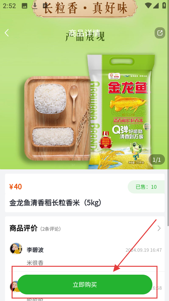 3、点击商品,可查看商品详情、价格、评价等,点击【立即购买】完成购买。
