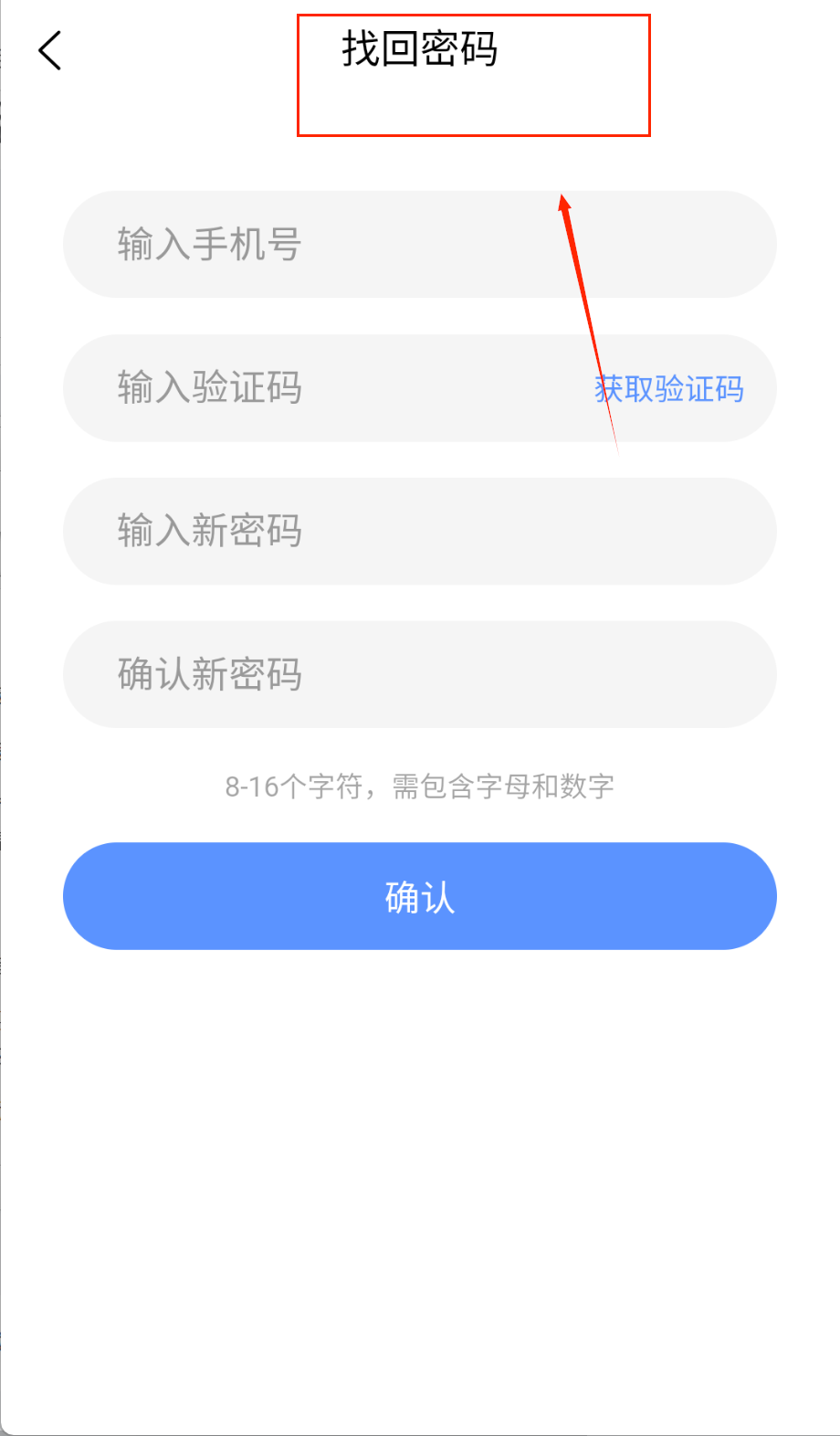 2、要是忘记密码的话也不用着急呢,可以点击找回密码选项进入相关页面。在这个页面需要先输入注册时的手机号码,然后获取并填写验证码。