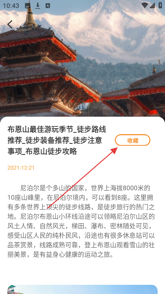 3、查看布恩山徒步攻略时,可点击【收藏】,方便后续查看该攻略内容。