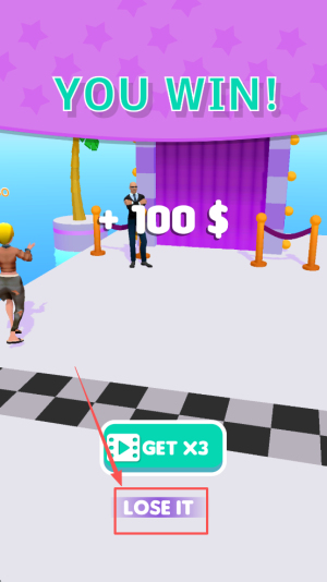 4、完成关卡:到达关卡终点,点击“LOSE IT”按钮,结束游戏。