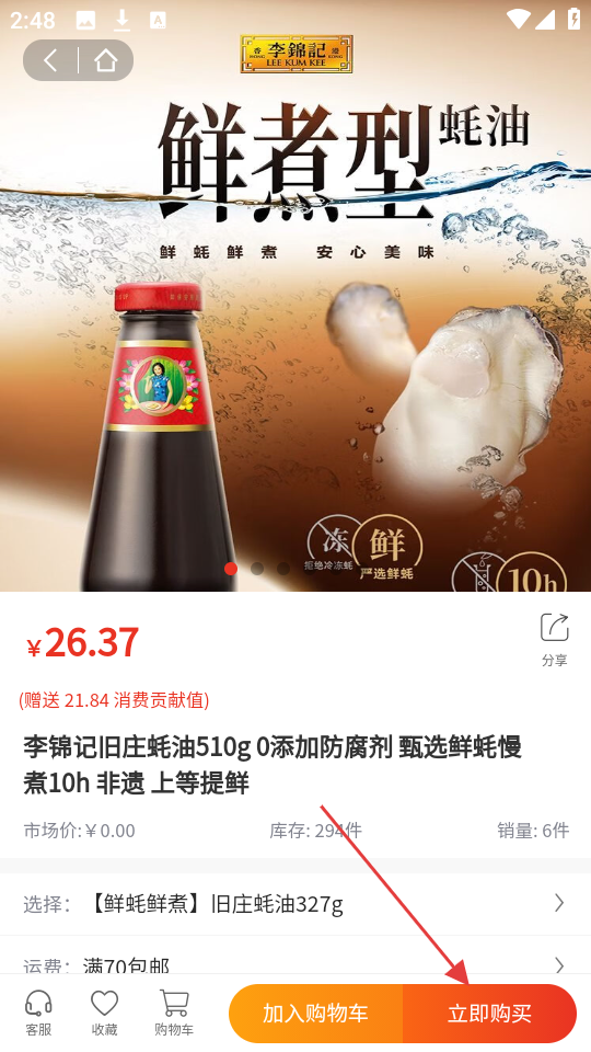 3、选中心仪商品,进入详情页,看价格和介绍,若要购买,点【立即购买】。