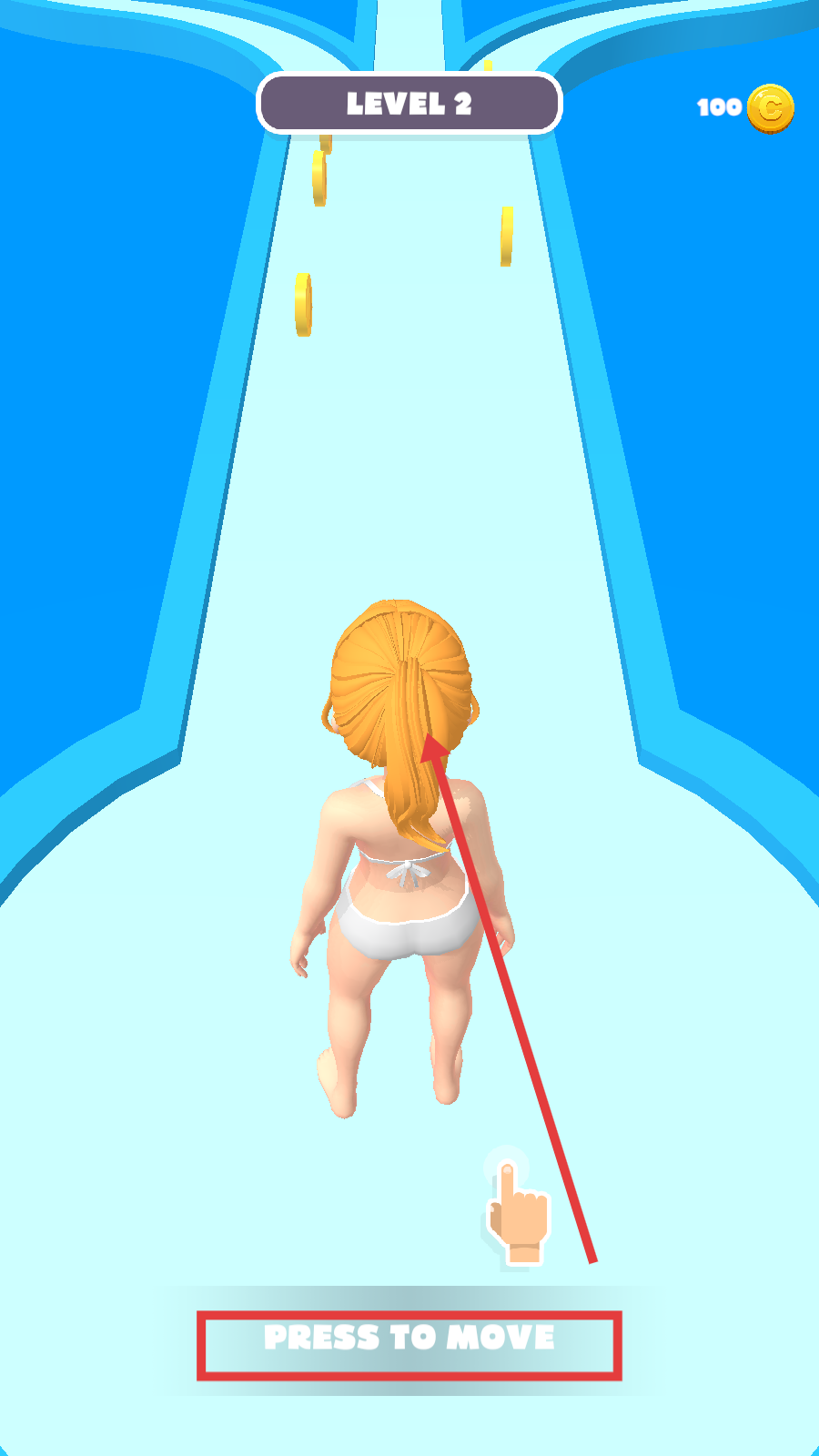 1、进入LEVEL-2,根据【PRESS-TO-MOVE】提示,按压屏幕控制角色在道路上移动,开始关卡挑战。