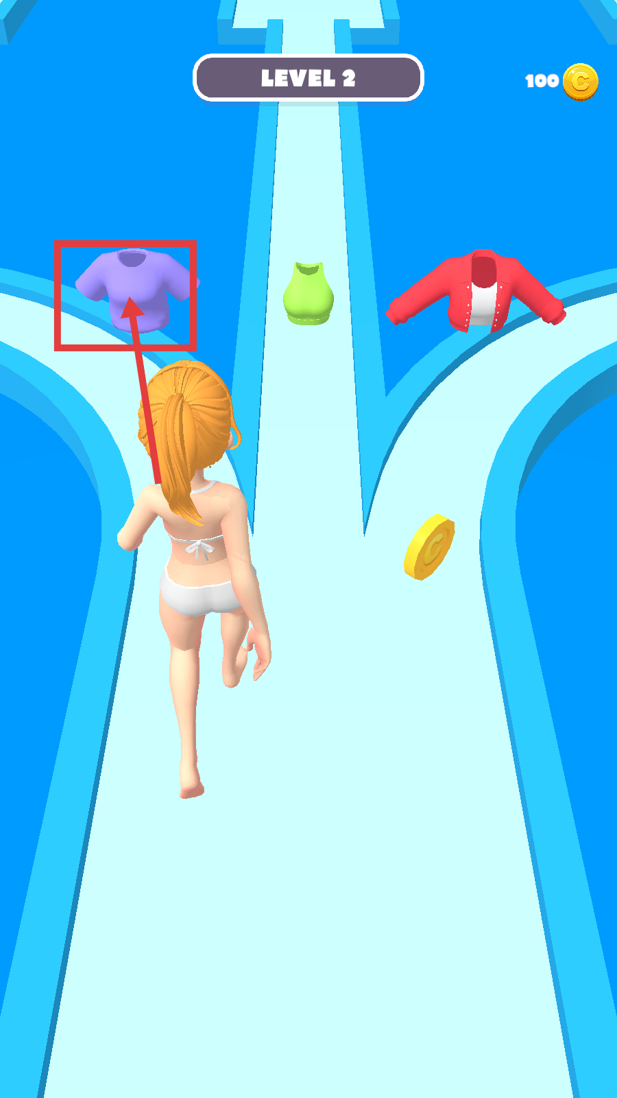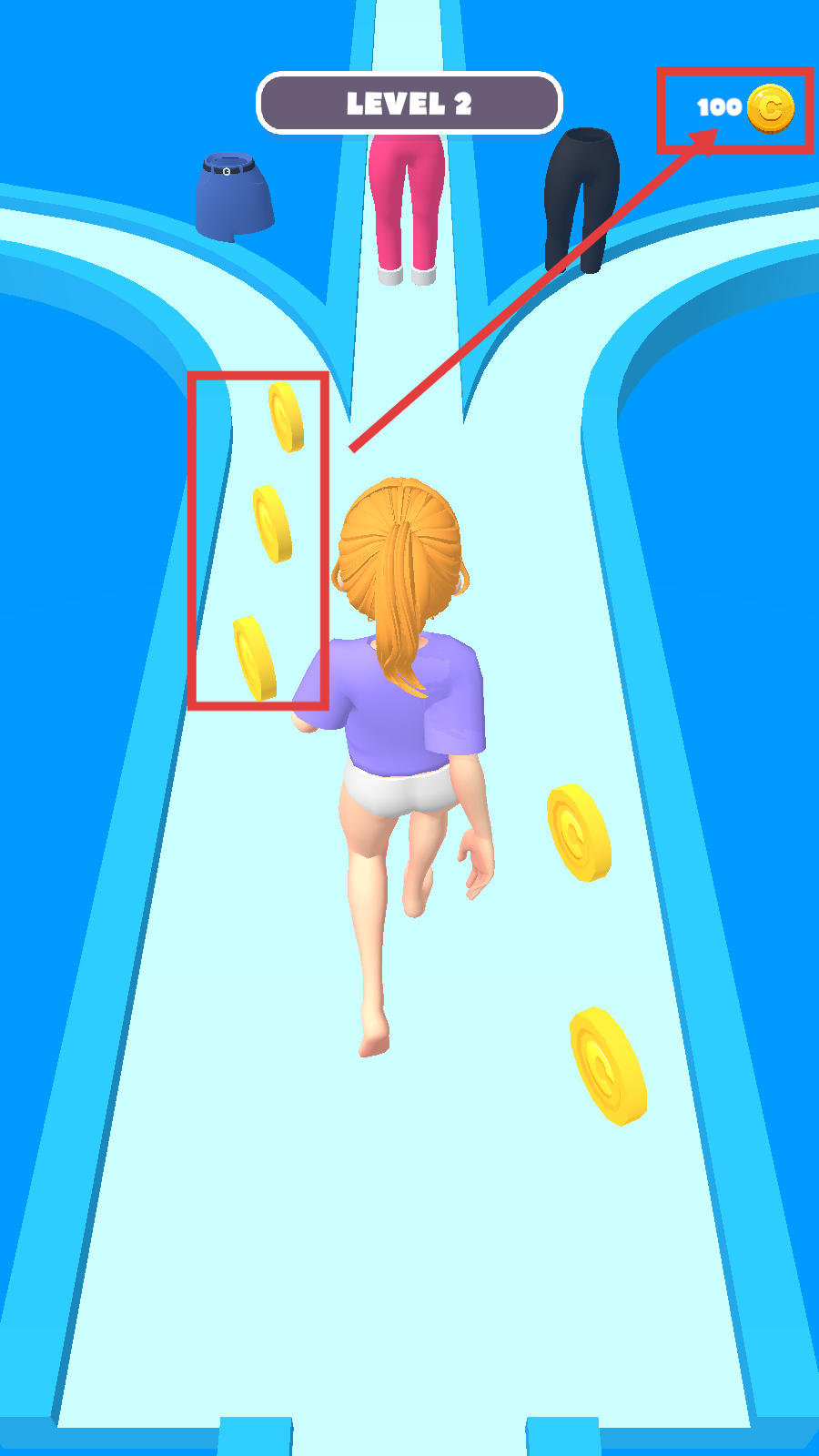 3、在道路上留意金币,尽量收集金币,同时继续获取合适的服装,推进关卡进程。