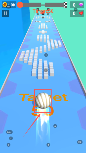 3、然后,在游戏过程中,点击屏幕控制球体跳跃,避开障碍物。