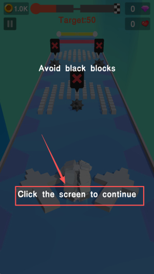 4、最后,当游戏提示“Avoid black blocks”时,点击屏幕继续游戏。