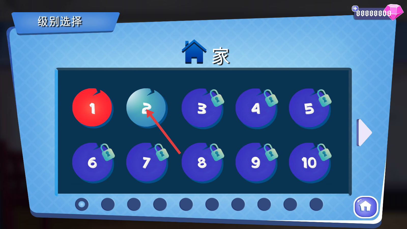 1、在级别选择界面,点击【2】进入第2关,开启该关卡的游戏挑战,准备推进任务。