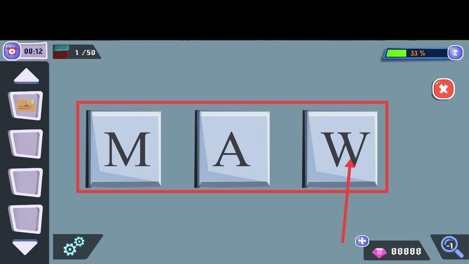 3、在字母板块场景里,找到【M】【A】【W】字母块,按照要求操作这些字母,完成关卡内的字母任务。