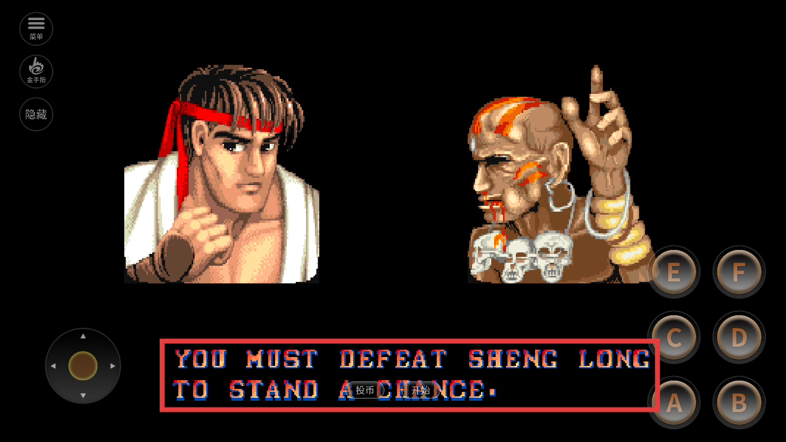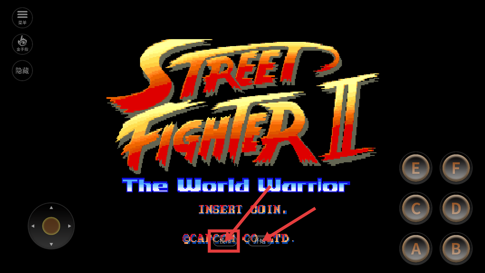 1、进入游戏先看【STREET-FIGHTER-II-The-World-Warrior】标题界面,找到【投币】按钮操作,再点【开始】进入游戏。