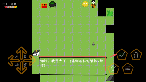 3、如何查看角色?屏幕显示“Lv.1 老鼠 1750”即为当前角色信息。