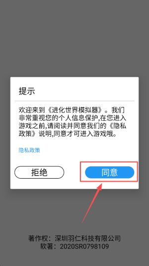 1、首先,阅读提示并点击“同意”按钮以接受隐私政策。