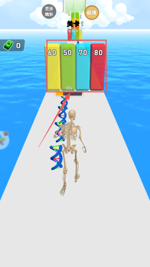 4、见证角色进化:随着 DNA 不断收集,观察角色逐步进化的过程,解锁更完全的形态,同时挑战更远的跑酷距离,收获更多乐趣。