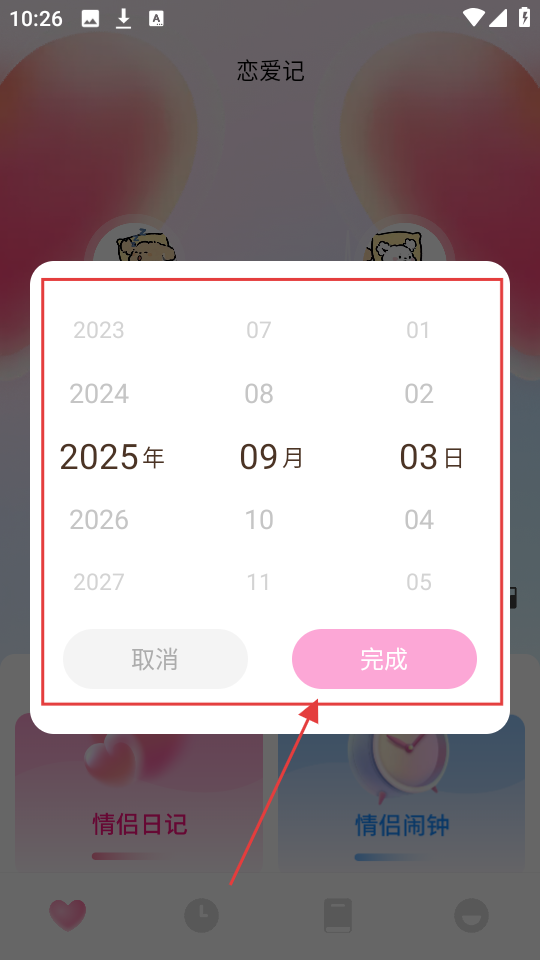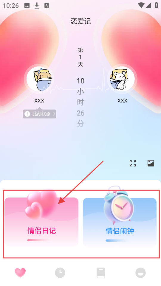 3、设置好起始时间后,可点【情侣日记】,进入日记页面记录恋爱点滴。