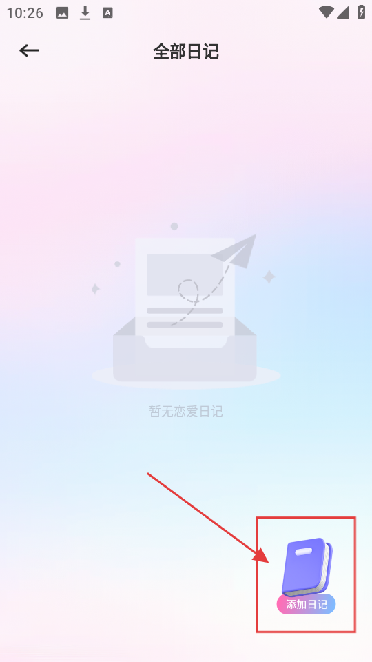 4、进入情侣日记页面,若暂无日记,点【添加日记】,开始记录恋爱相关的内容。