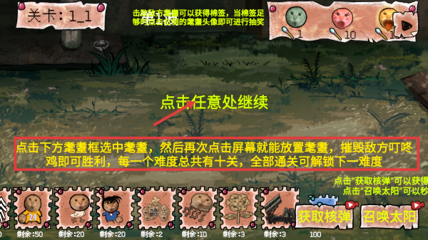 2、在关卡中,点击下方耄耋框选中耄耋,再次点击屏幕放置,摧毁敌方叮咚鸡即可胜利,通关十关解锁下一难度。