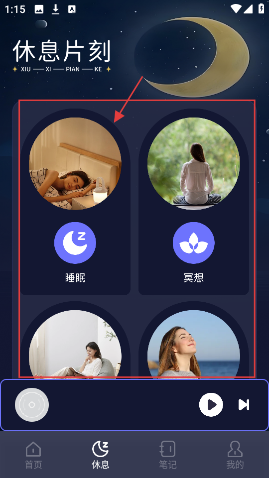 3、进入休息页,能看到相关功能选项,可挑选适合的休息方式,开启放松休息时刻。