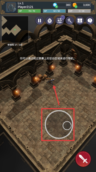 2、在修道院场景中,可通过刷过屏幕空白区域来导航,操控角色在场景内移动探索。