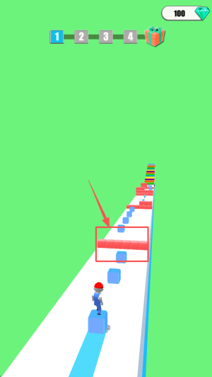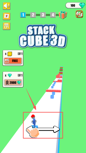 2、接着,通过滑动屏幕来控制角色移动并堆叠方块。