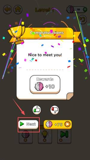 4、最后,完成关卡后点击“Next”按钮继续游戏。