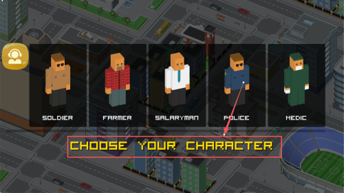 2、如何挑选职业?在SOLDIER、FARMER、SALARYMAN、POLICE、MEDIC中点击你想扮演的角色,再点CHOOSE YOUR CHARACTER确认。
