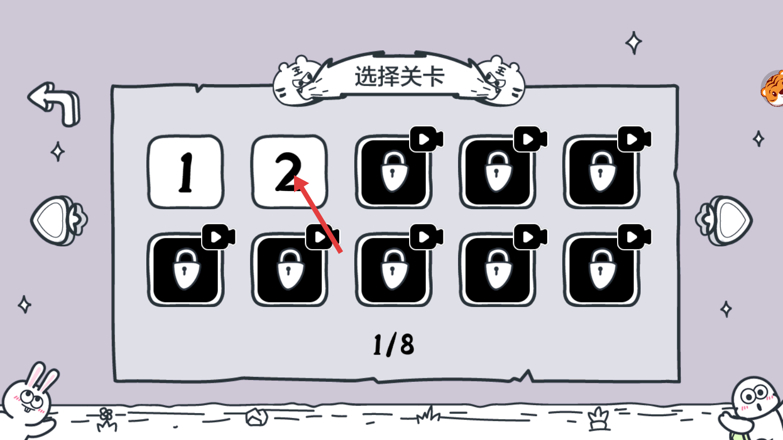 1、在【选择关卡】界面,优先选择已解锁的关卡(如第2关),开始游戏挑战,逐步解锁后续关卡。