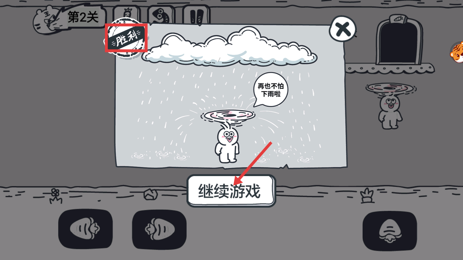4、成功让兔子飞起后会显示【胜利】,点击【继续游戏】,可进入后续关卡或剧情,继续推进游戏。