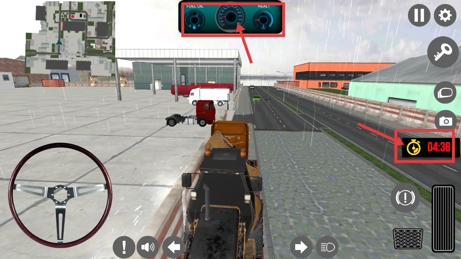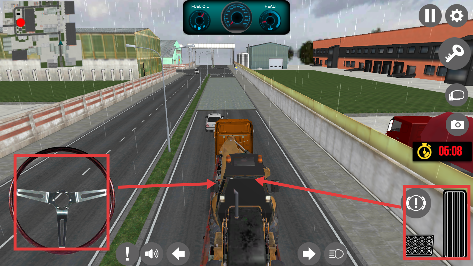 2、驾驶过程中密切关注【FUEL-OIL】和【HEALT】仪表确保燃油充足和车辆健康时间显示【05:08】帮助管理任务进度。