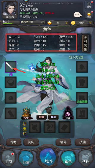 2、功法装备搭配:收集各类修真秘籍与法宝装备,根据当前境界和战斗需求进行合理搭配组合。