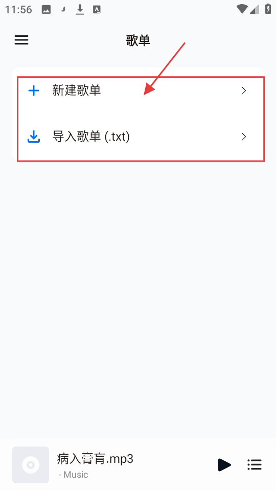 1、进入歌单页,可点【新建歌单】创建歌单,或点【导入歌单(.txt)】导入外部歌单,管理音乐歌单。