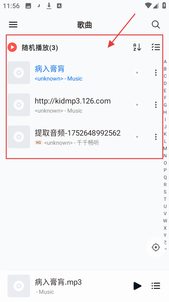 3、点开侧边栏,有【歌曲】【专辑】等选项,选对应选项,可按不同类别查看和管理音乐资源。