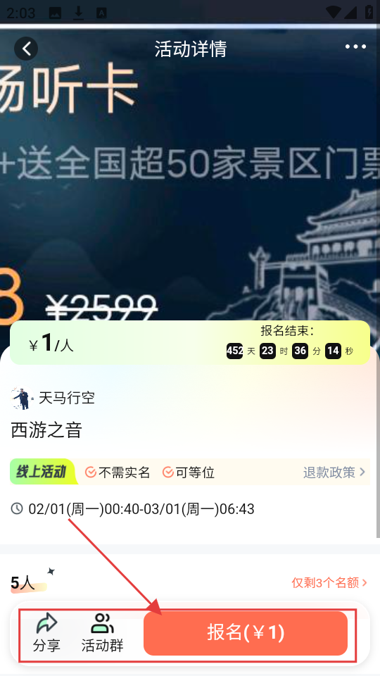 4、选好【西游之音】活动后,进入详情页,可点击【报名】参与活动。