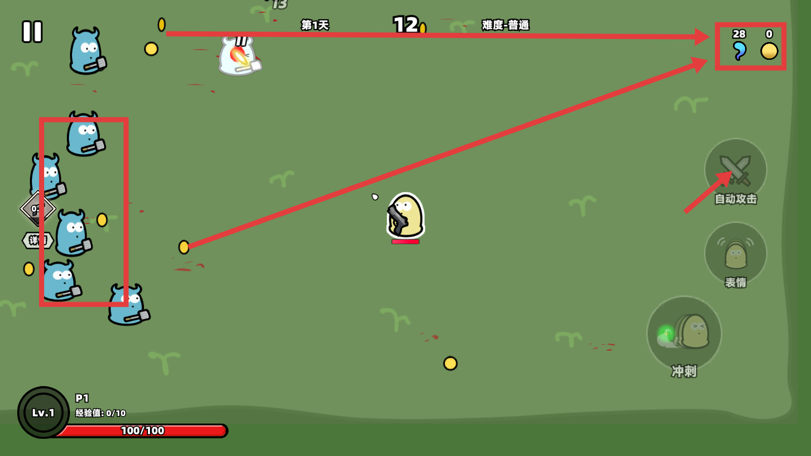 2、遇到小怪群时,可利用右侧【自动攻击】功能,更高效地消灭敌人,获取资源。