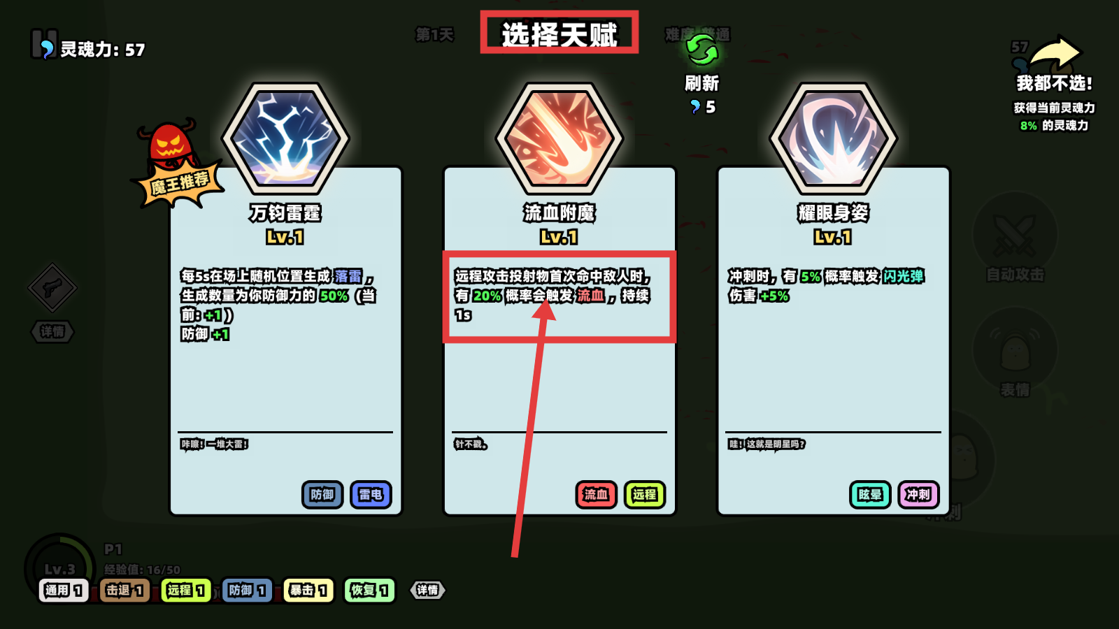 4、天赋选择策略:每关通关后需谨慎选择天赋技能,根据当前构筑方向强化核心能力,形成协同增效效果。