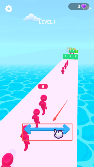 1、开启集结闯关:进入游戏熟悉基础操作,了解 “集小人防掉队、选跳跃 / 撞墙” 的规则,选择初始赛道,明确闯关目标。