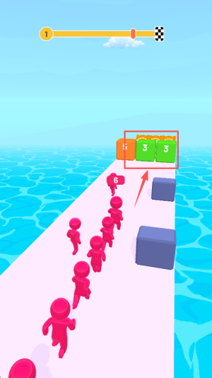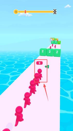 2、赛道集结小人:沿赛道前进,遇到分散的小人时主动靠近,将其纳入队伍,逐步壮大队伍规模,为后续闯关奠定基础。
