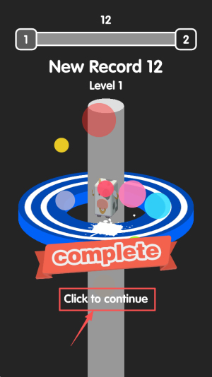 4、最后,当完成关卡时,点击“Click to continue”按钮进入下一关。