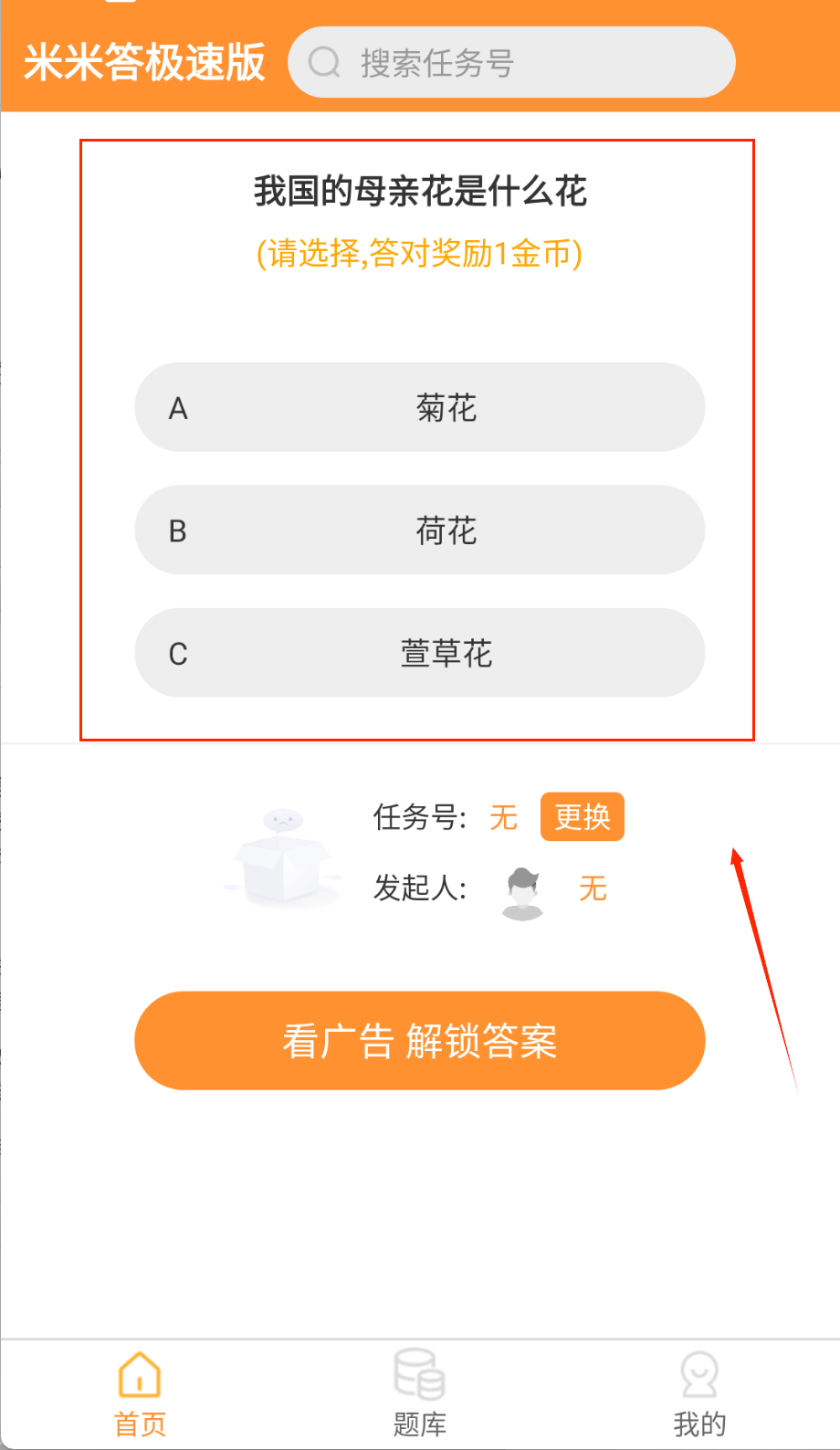 2、在搜索框中输入特定任务编号可快速查找目标题目,当遇到疑难问题时可通过观看15-30秒广告视频的方式获取正确答案提示。