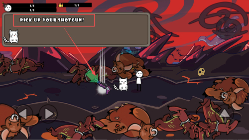 2、如何左右移动?看到“USE THE BUTTONS TO MOVE LEFT AND RIGHT!”时,按左右按钮移动角色。