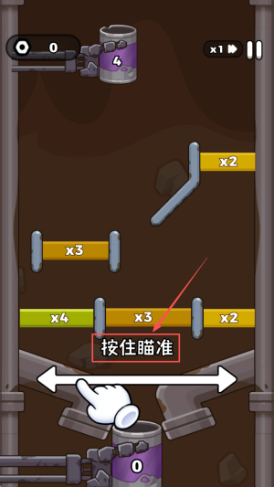 3、如何瞄准射击?出现"X2 x3 x4"等倍数时"按住瞄准"松手发射。